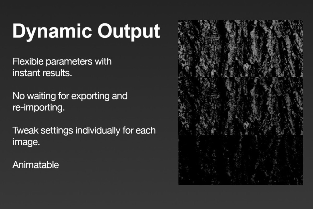 Textures can be generated dynamically using procedural textures, image textures or any node-group input.